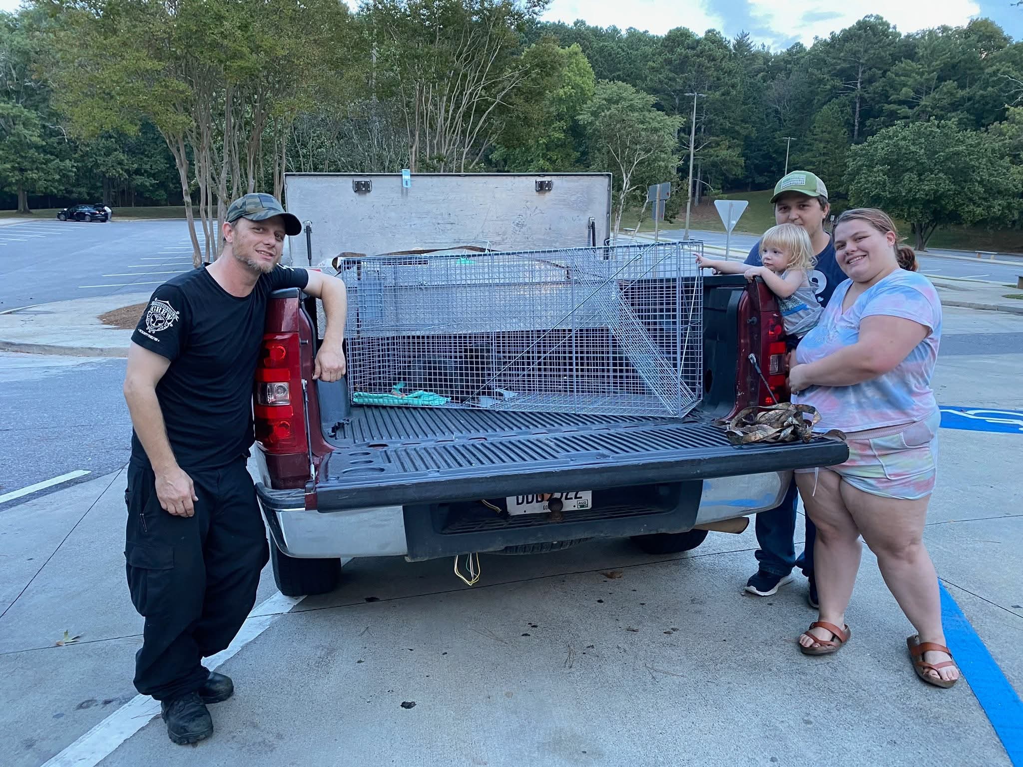 In a fortunate turn of events, one of our volunteers, Charlie, happened to stop by with his truck, allowing us to load the trap for transport. Charlie and his family then drove the truck to the rescue, where we ensured the dog’s safety overnight.
