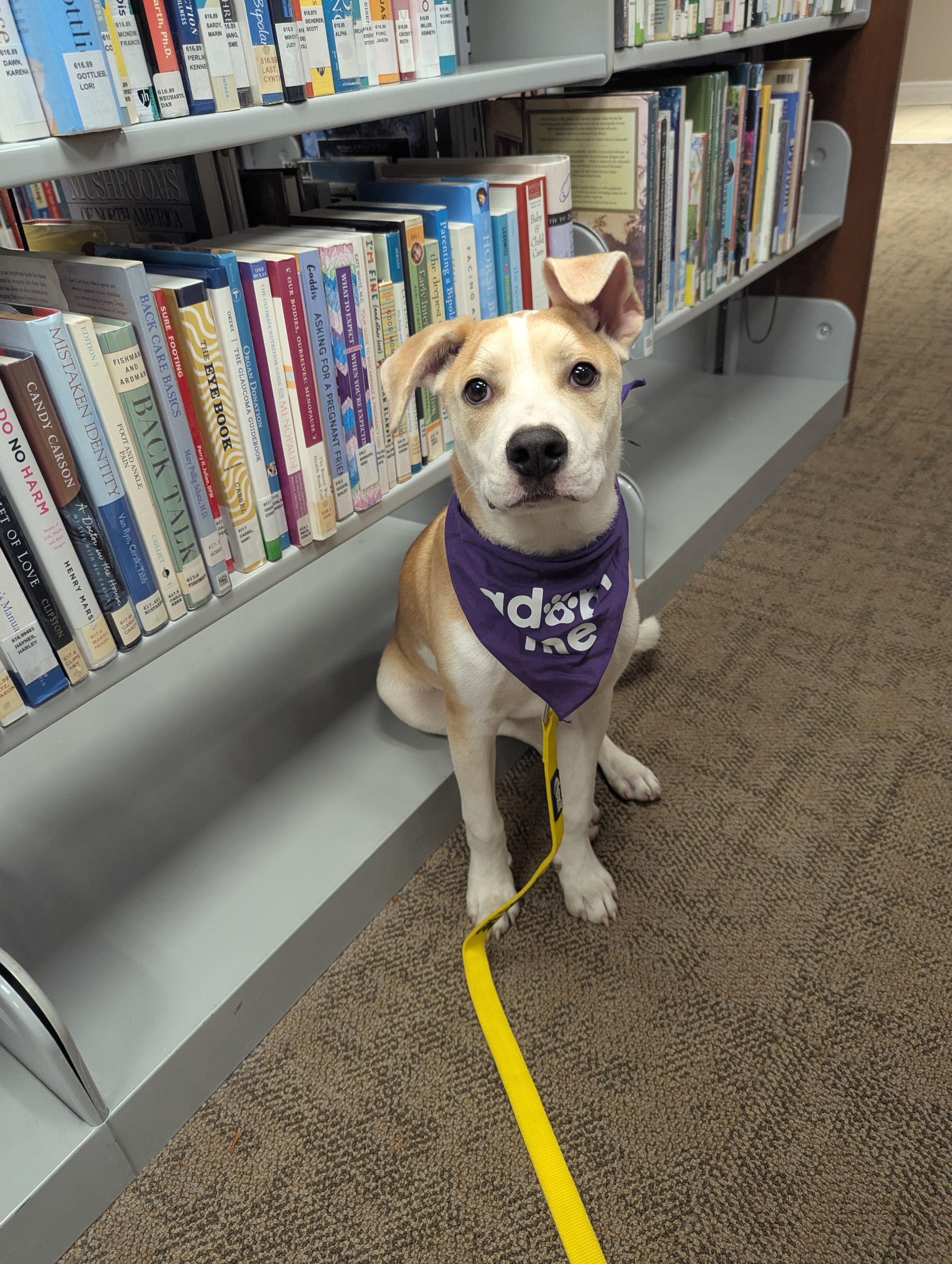 Paw-blic Library Trip: Jacob -- Wednesday September 24th, 2025 This week, the quiet halls of the local library were filled with excitement—not because of a new book release, but thanks to a special four-legged visitor named Jacob! Jacob, a gentle and lovable rescue dog from Paw Angels Rescue, made a visit to the library, instantly winning hearts (and a few belly rubs). With a wagging tail and soulful eyes, he greeted every curious child with kindness, patiently sitting beside them as they read books or even worked on their homework. One young reader said, “He made my math less scary!”—now that’s what we call a real homework hero! But Jacob wasn’t just there to support the students—he was on a mission of his own: to find the paw-fect book. He sniffed through the shelves, explored the reading nooks, and even sat attentively during story time. From the children’s corner to the reference section, Jacob made sure to explore all the wonders the library had to offer. His favorite stop? The beanbag chairs and, of course, the treat bag from the librarian. Library staff called him “a true gentleman” and are already requesting a return visit. The best part? Jacob is looking for his forever home. If you're searching for a kind, gentle, and intelligent companion who loves books, kids, and adventures, Jacob might just be your next best friend. Visit Paw Angels Rescue to meet Jacob and learn how you can bring a little more tail-wagging joy into your life. Because every great story deserves a happy ending—and Jacob is ready for his!