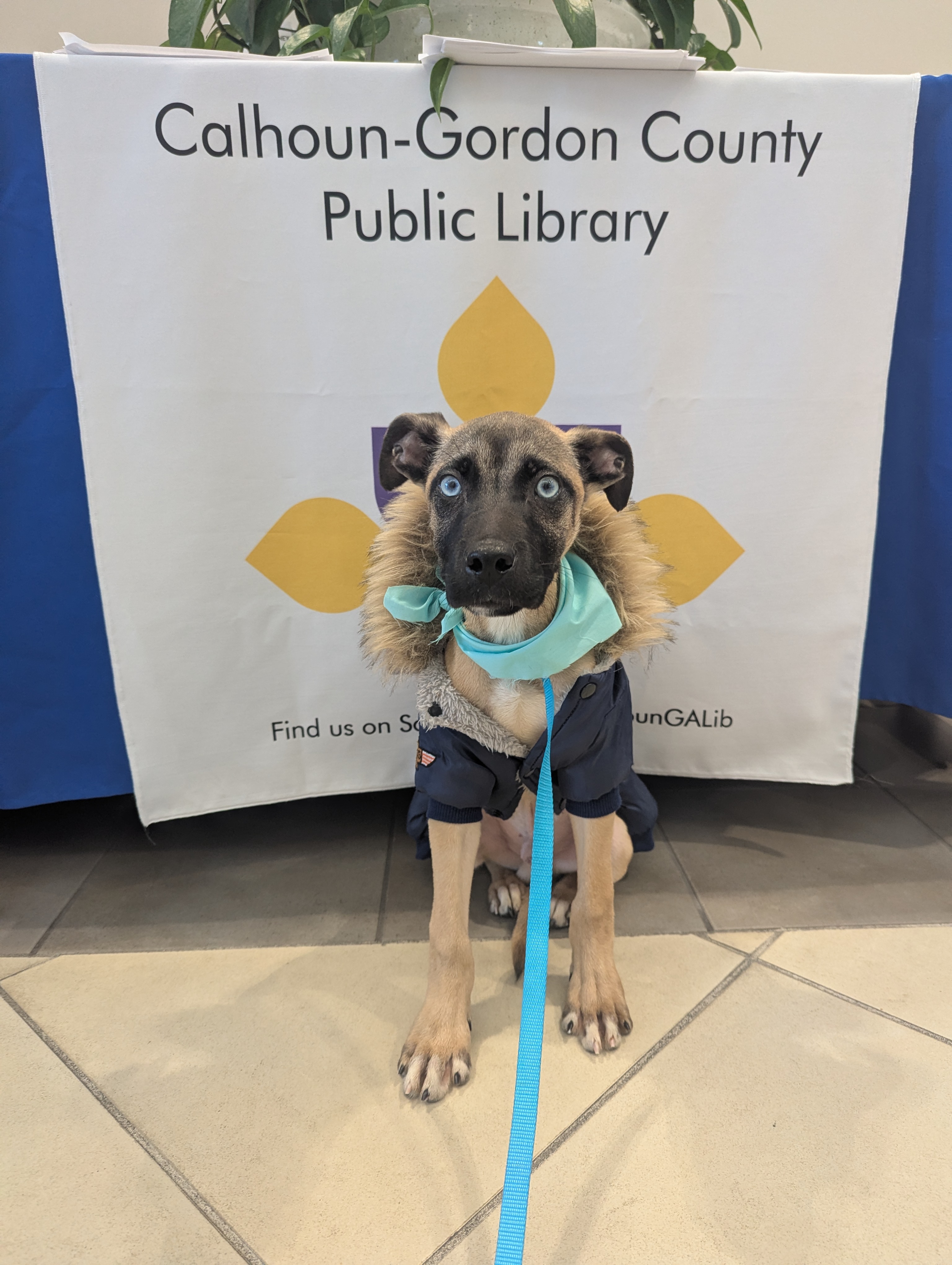 Paw-blic Library Trip: Frehley -- Wednesday October 29th, 2025 The library had an extra dose of cuteness this week when Frehley, a shy but sweet puppy, stopped by for a special Halloween visit dressed in his very own Top Gun jacket. The tiny “Maverick” quickly stole everyone’s hearts as he helped children make handmade toys and colorful bandanas. Though Frehley can be a bit shy, he lit up around the kids—snuggling into a young girl’s lap for a nap between playtimes and happily watching people wander through the library. He even offered gentle puppy kisses to everyone who came to say hello. Before heading home, Frehley (and his humans) wanted to thank all the kind visitors who donated to the library’s donation box. It was a day full of creativity, community, and canine charm—proving that even the smallest pilot can make a big difference.