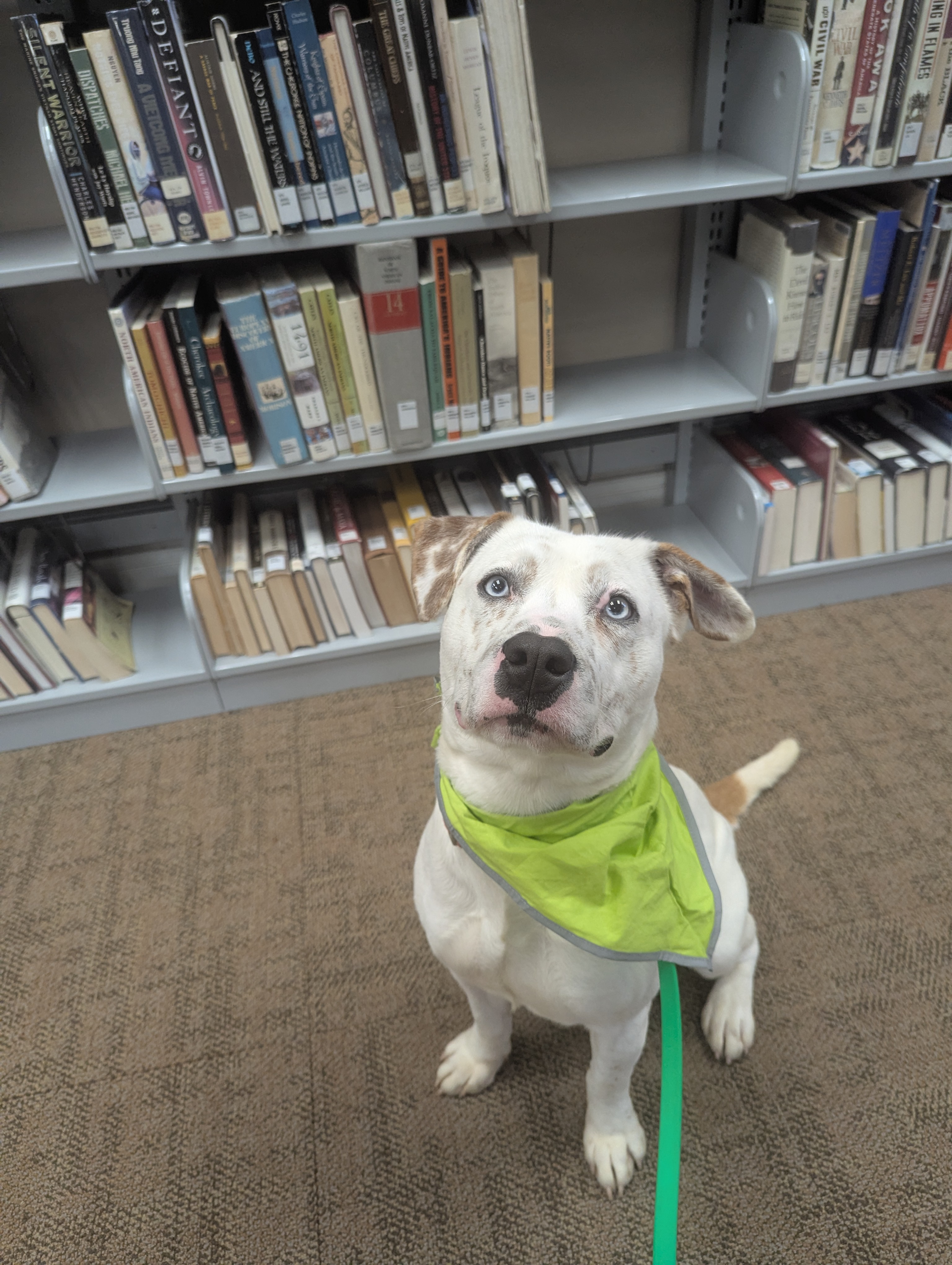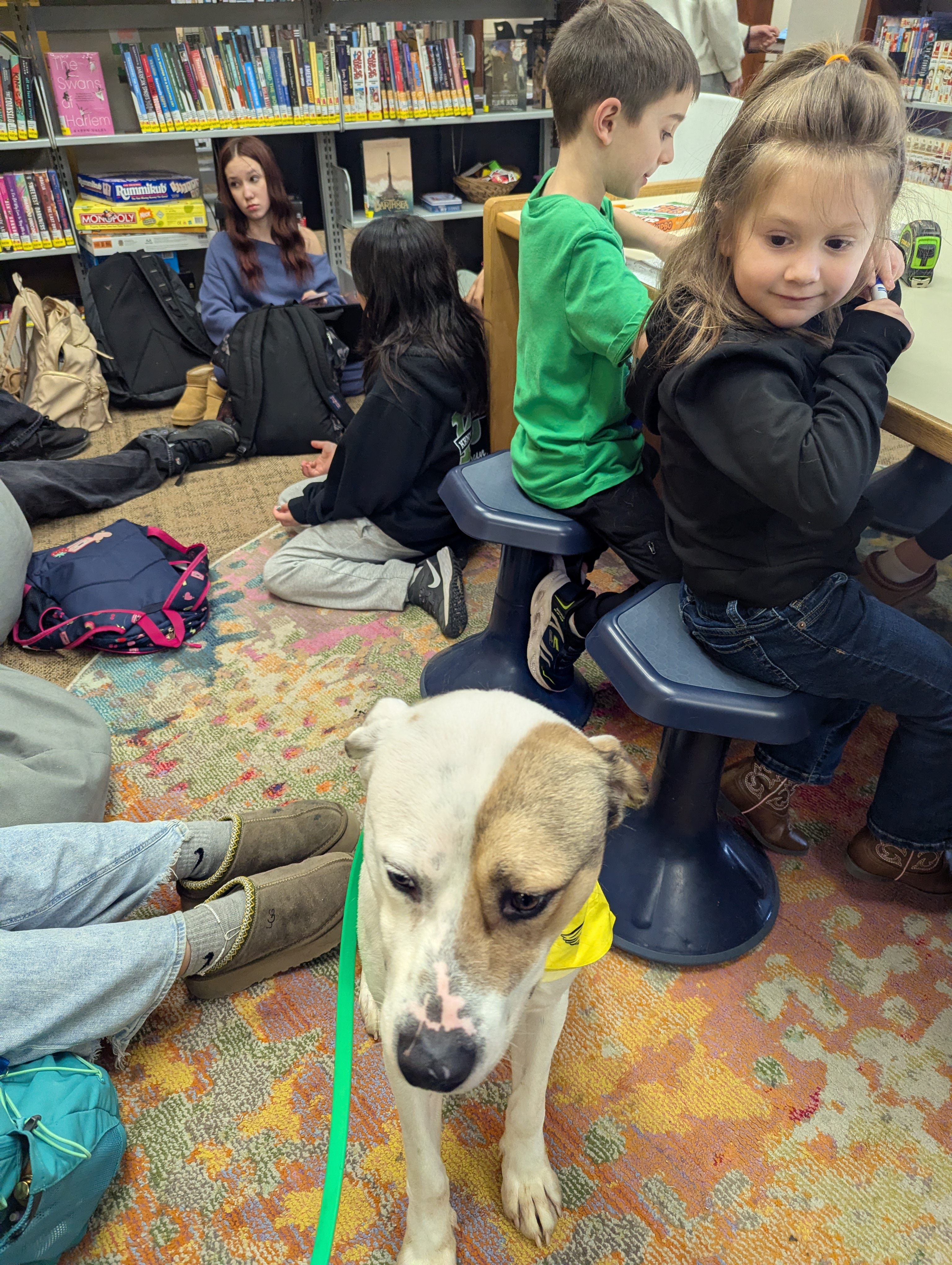 Afternoon with Paw Pups: Storm -- Thursday January 29th, 2026 The Gordon County Library had a very special visitor this week — Storm , our four-legged reading buddy and professional attention magnet! From the moment he walked in, Storm was literally the center of attention… and he loved every second of it. As kids worked on multiple homework assignments, Storm made his rounds like a tiny furry supervisor, offering moral support, smiles, and plenty of calm comfort. Before long, he was surrounded by kids giving him nonstop pets — and Storm was happily soaking up every bit of love like it was his full-time job. Storm also took his library duties seriously. He inspected the books (quality control is important!) and made sure everything passed his official sniff test. Then, he headed over to our donation drop box and proudly helped pick up the generous donations left for the rescue. Storm would like to send a big, tail-wagging THANK YOU to everyone who donated and helped support our dogs. Your kindness truly makes a difference, and we’re so grateful for this amazing community! Want to meet Storm for yourself?